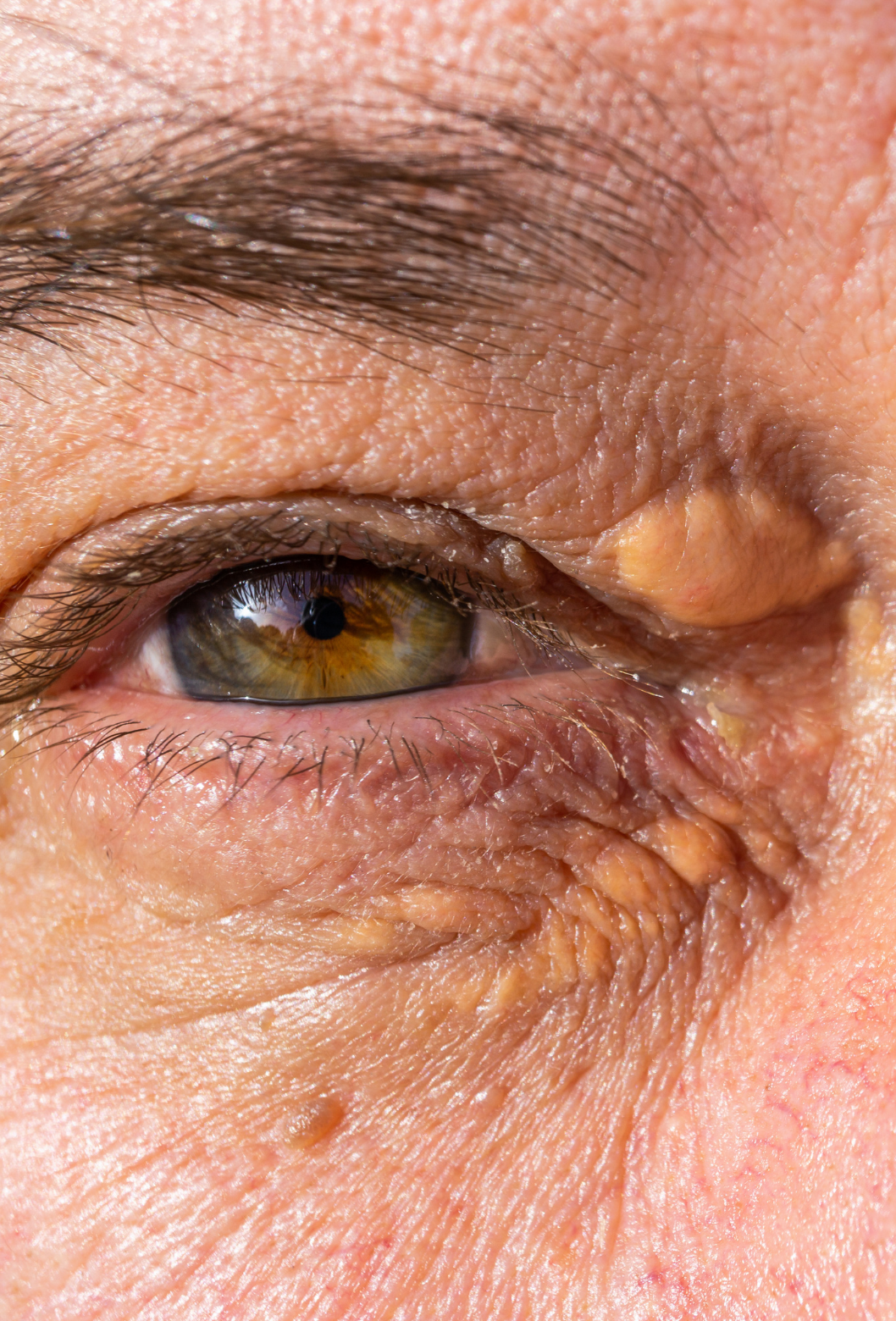 Xantelasma são placas amareladas nas pálpebras, associadas ao colesterol, tratáveis com laser, cirurgia ou ácidos, com excelente resultado estético.