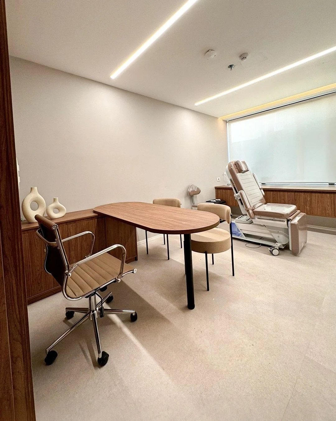 Salas de tratamento simples e funcionais – Para procedimentos não invasivos, com um ambiente confortável e organizado.