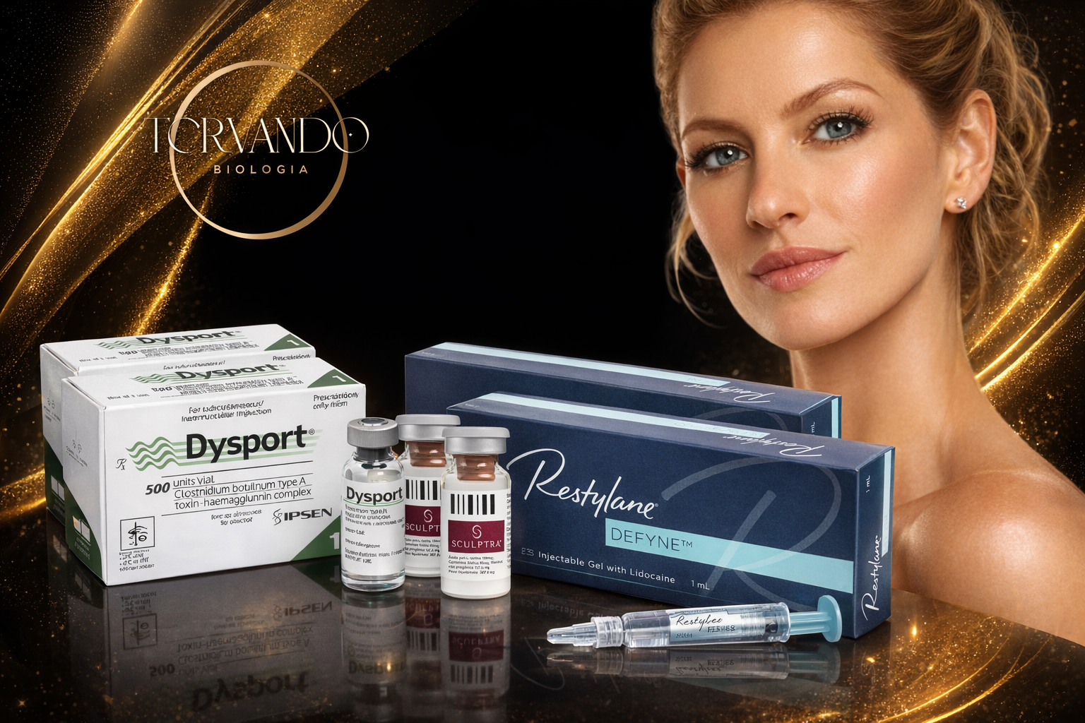 O programa contempla três aplicações de Dysport® Full Face distribuídas ao longo de 12 meses, três sessões de Sculptra® com intervalo aproximado de 45 dias entre cada aplicação e uma sessão de preenchimento (labial ou facial) ou skinbooster, conforme avaliação clínica.