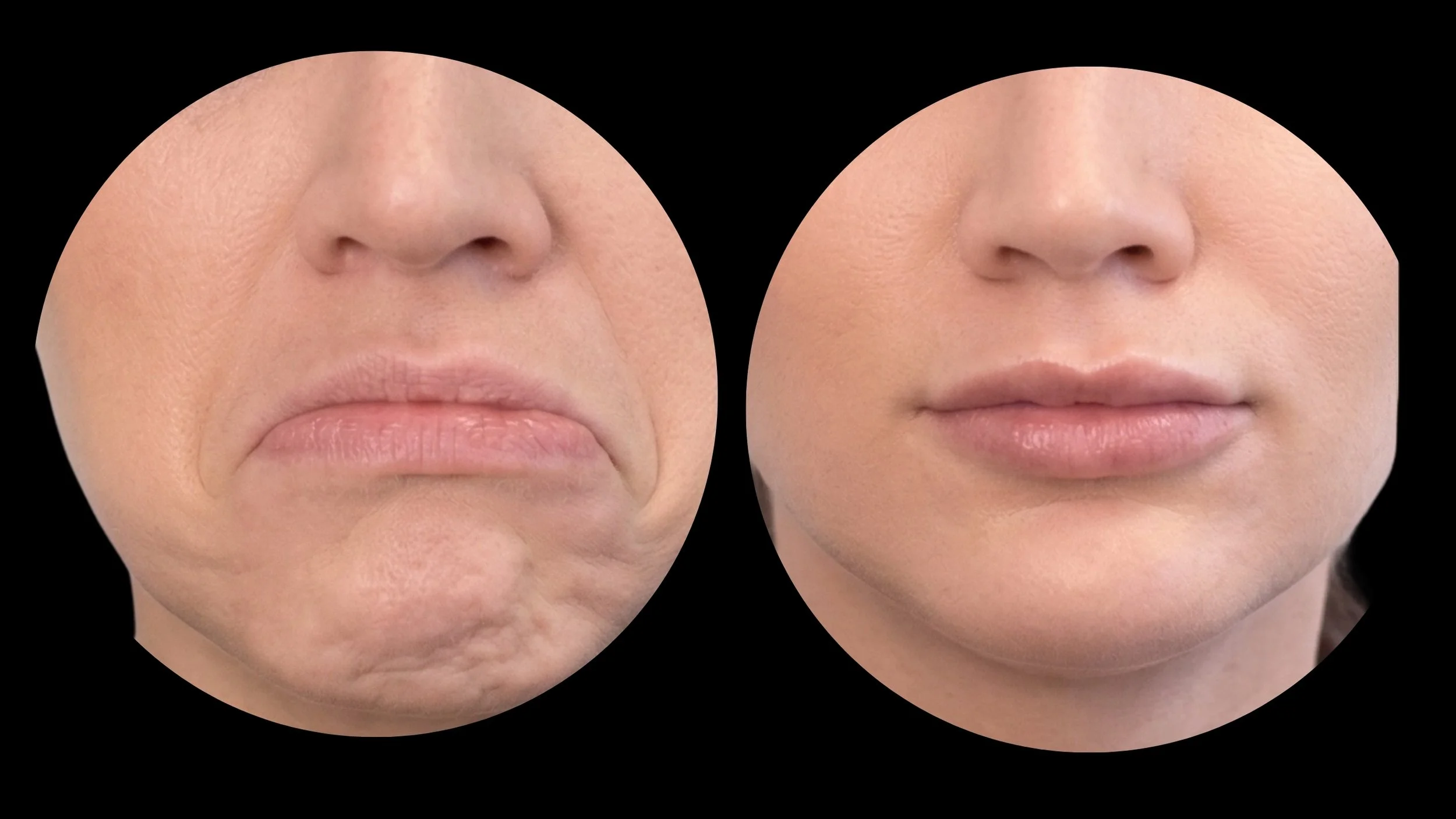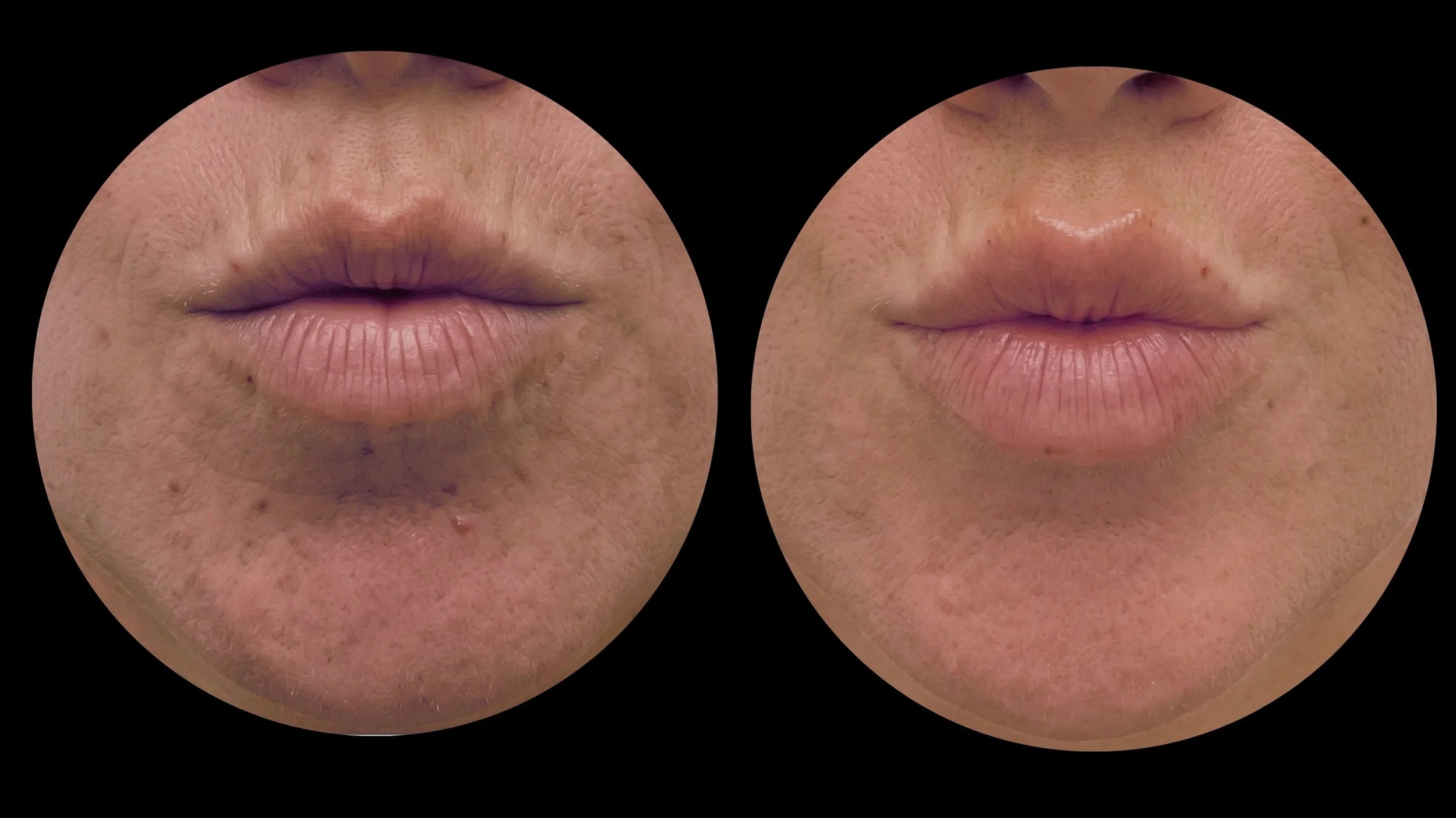 Bloqueio superficial de fibras hipertrofiadas do músculo orbicular do boca (m. orbicularis oris), reduzindo as impressões de traves vertificais ao redor da boca, conhecida como rugas em código de barra.